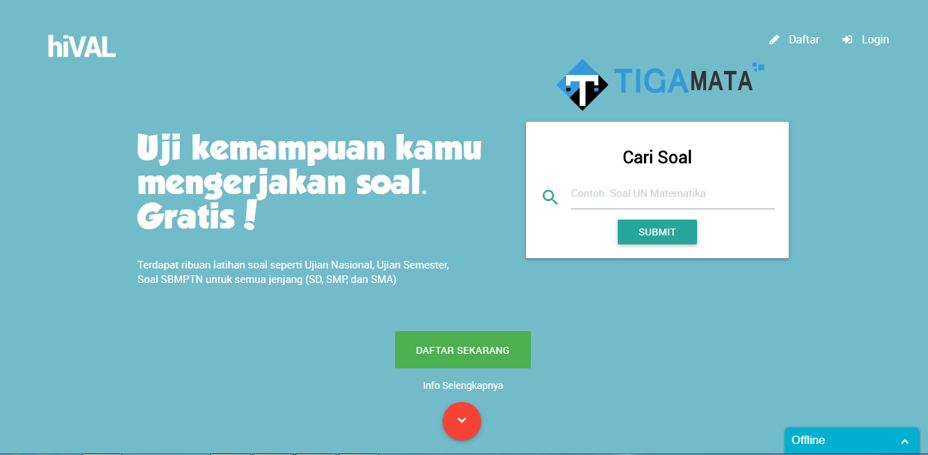 Kekurangannya, anda hanya disediakan soal sebanyak satu buah per satu mata pelajaran.
