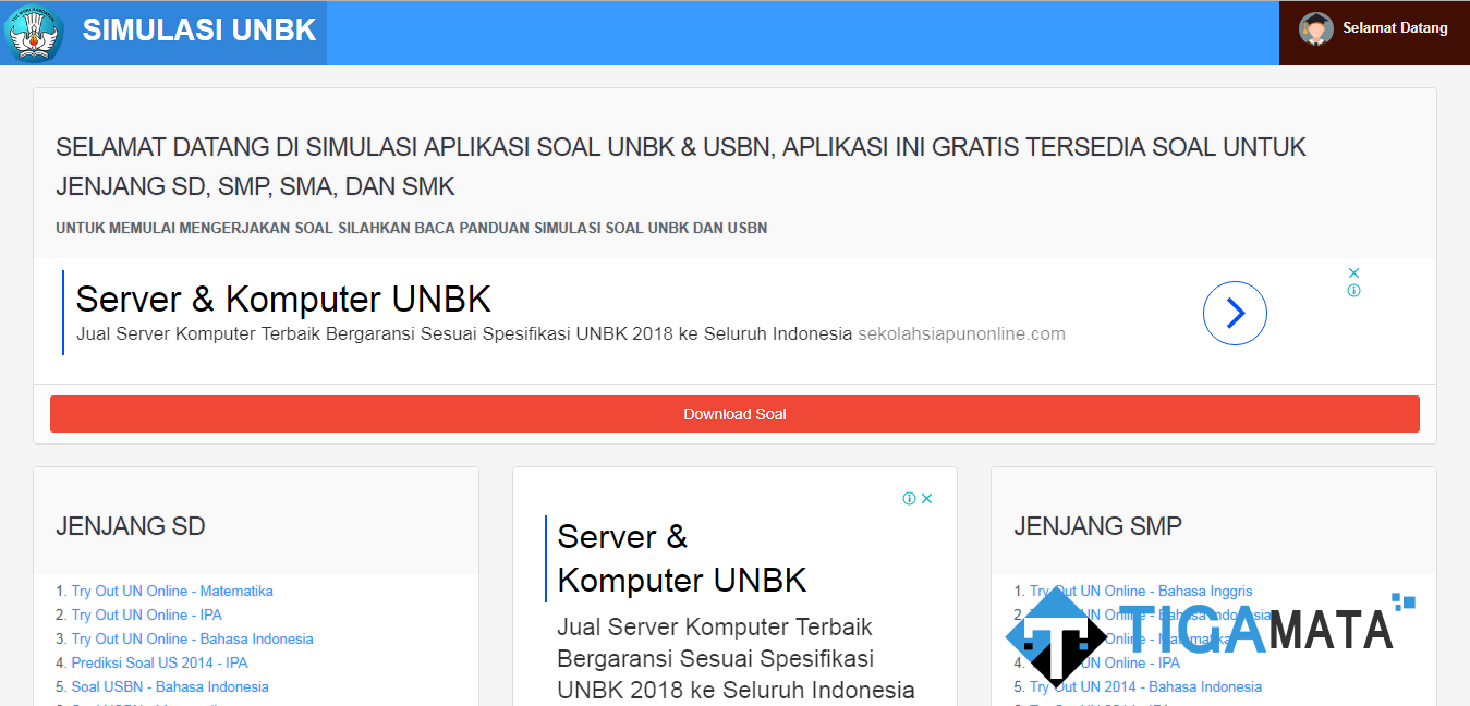 Bagaimana tidak!! Saat dulu pertama kali mengunjungi website ini yang pertama kali jadi fokus saya tombol merah dengan tulisan Download Soal. Tombol itu saya klik, dan alhasil bukannya otw melaksanakan simulasi UNBK/USBN, tapi malah diarahkan ke website lain yang tidak jelas.
