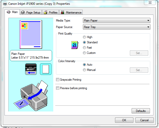 5. Maka akan muncul tampilan setting printer tersebut. (Setiap Printer mempunyai kolom pengaturan yang berbeda beda)